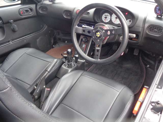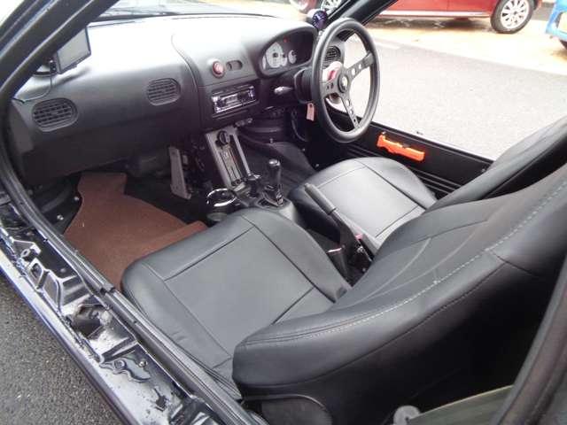 マツダスピード仕様一部 社外車高調 社外マフラー 社外14インチアルミ 革調シートカバー 社外ステアリング 社外CDデッキ 社外ポータブルナビ 社外パイピング
